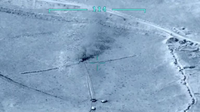 A minute later the boy’s pixelated body scampered away, just as a low-altitude cloud drifted beneath the drones, blocking the camera. When it cleared the three men had drawn off by themselves, about 100 yards outside the village on the road into town.
